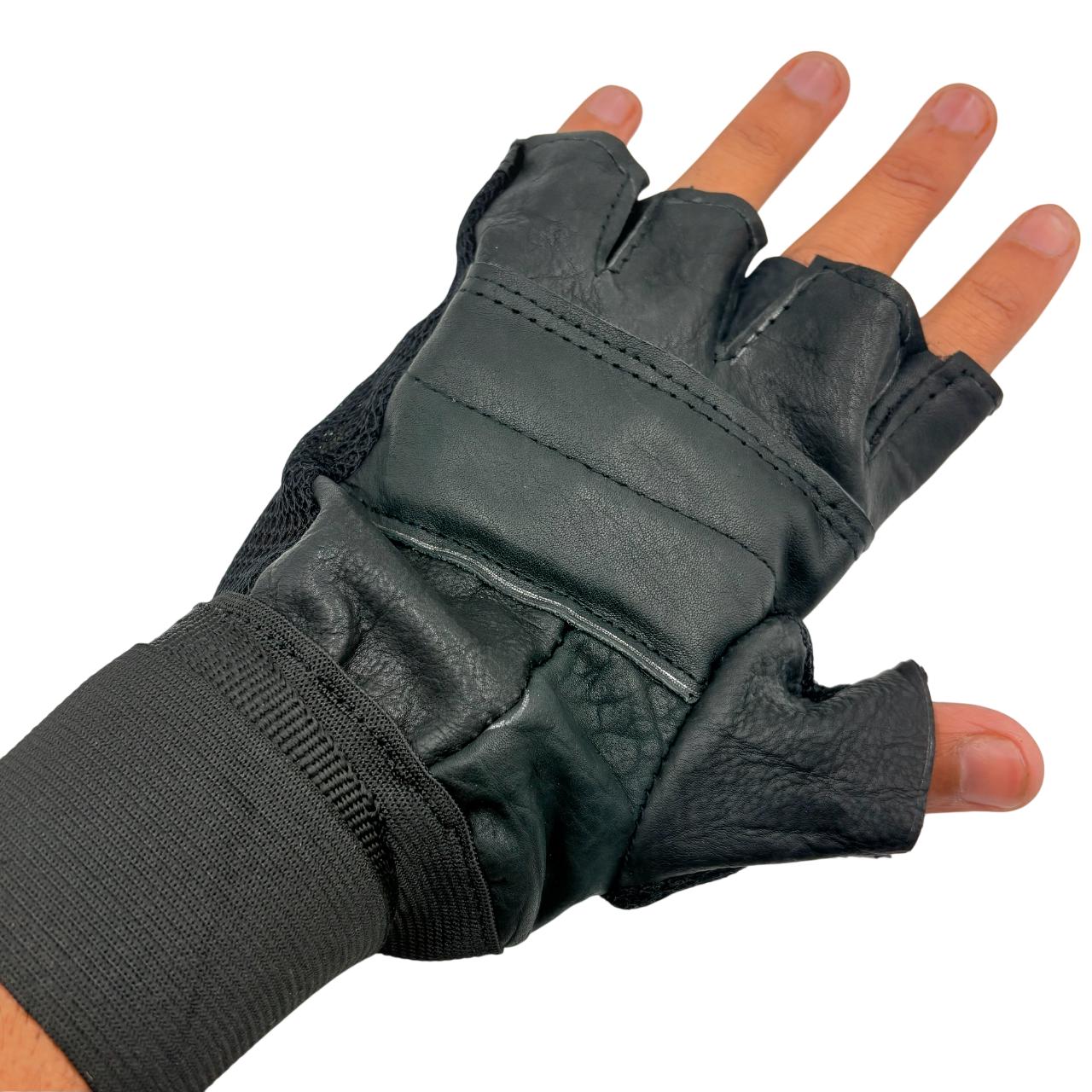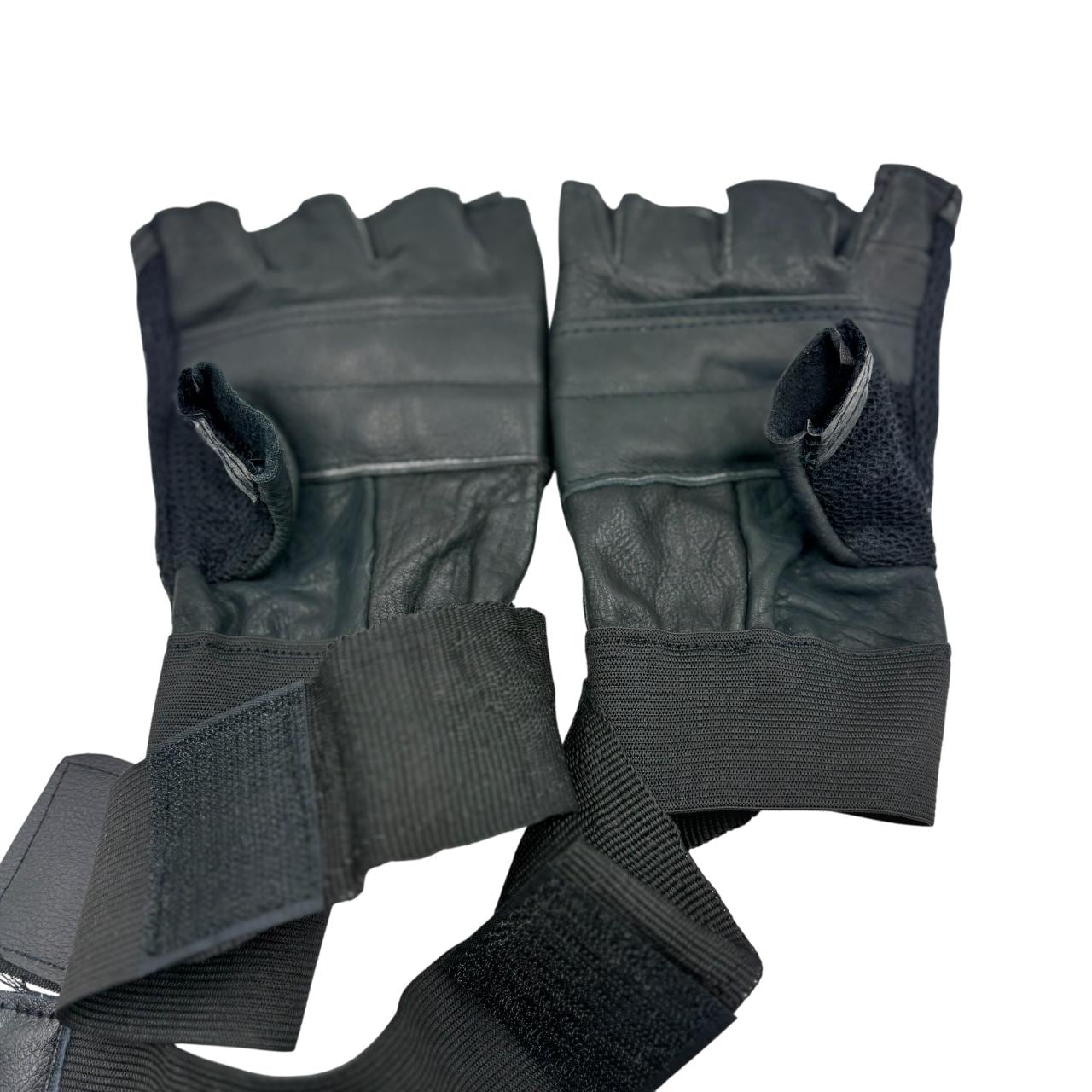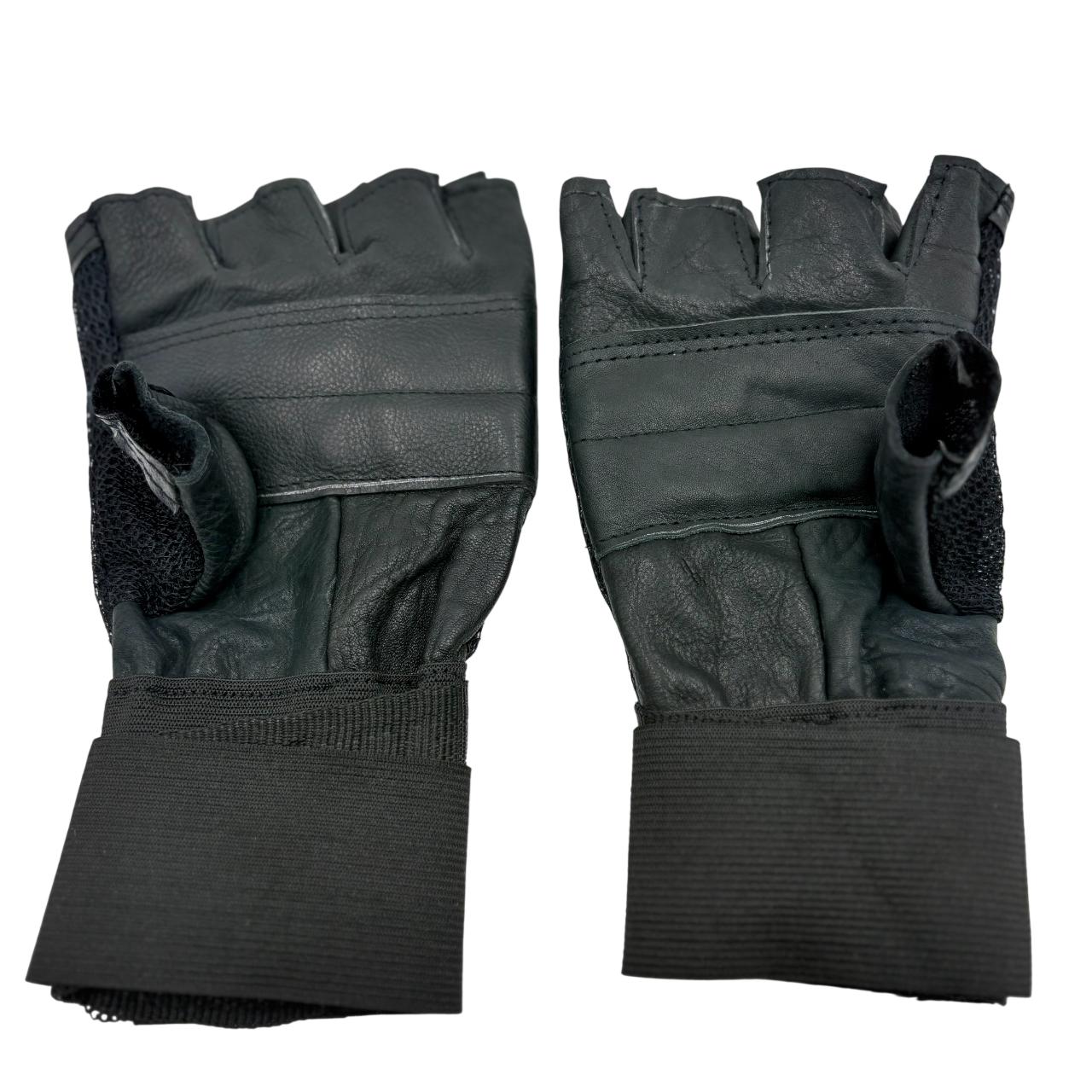 Fingerless Leather Weightlifting Gloves with Wrist Support (1 Pair)