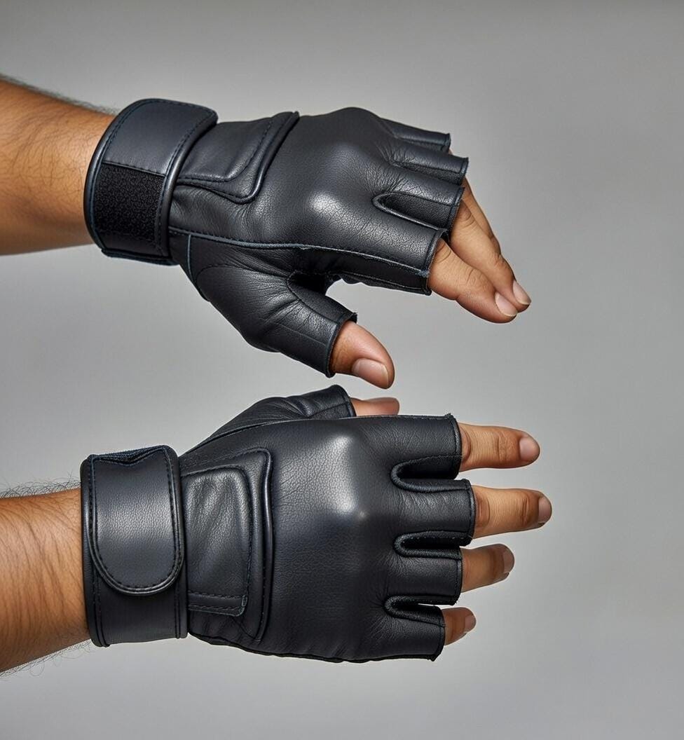 These all-leather weightlifting gloves are designed for durability, comfort, and performance during intense training. Suitable for lifting, cycling, and general fitness use.